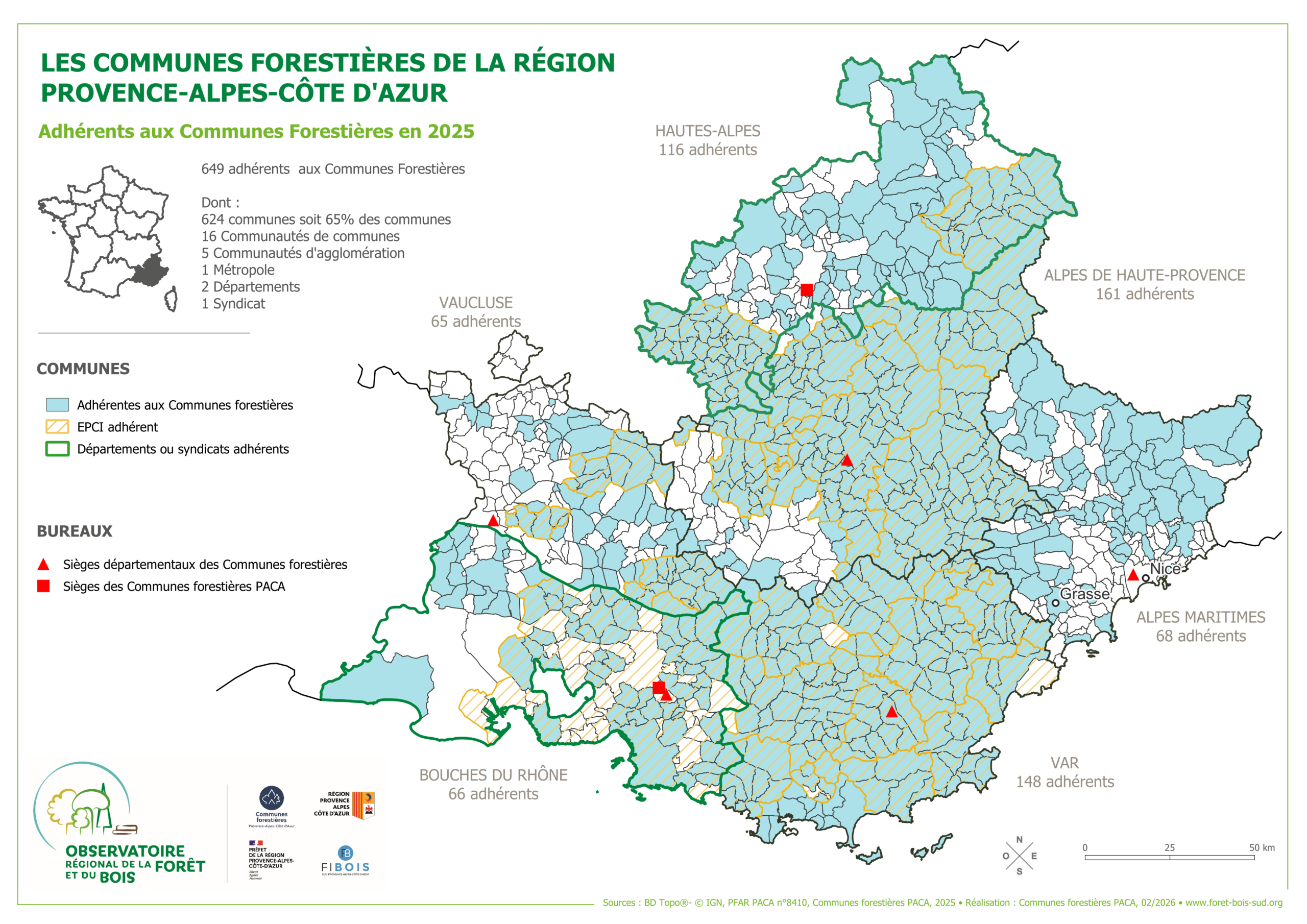 Sources : BD Topo®, IFN Carto - masque forêt (Bd Forêt V3) • Réalisation : Communes forestières PACA, 12/2025 • www.ofme.org