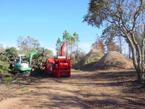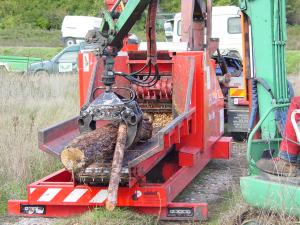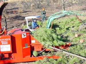 Durant ces deux journées 400 m3 de Pin Sylvestre ont été transformés sur place en plaquettes forestières et ont été transportés immédiatement par l’Union des Coopératives forestières vers une chaufferie bois.