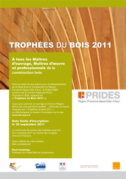 Organisés en partenariat avec l’Ordre des Architectes et l’Union Régionale des Maires, les Trophées du Bois ont pour but de valoriser les ouvrages bois réalisés en Provence-Alpes-Côte d’Azur, et de participer ainsi au développement de la filière régionale.