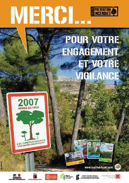 Pour souligner cela, remercier la population de sa vigilance et l’encourager à poursuivre son action, l’Institut pour la Forêt a édité une affiche à 6 000 exemplaires, avec le soutien de financier de l’Etat (CFM), des Régions Corse, Languedoc-Roussillon, et Provence Alpes Côte d’Azur, de l’Entente pour la forêt et de la Fondation Caisse d’Epargne.