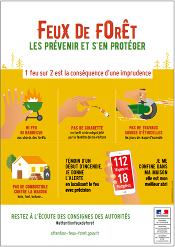 Le but de cette campagne est de diffuser les conseils à suivre face au risque incendie de forêt, tant pour veiller à ne pas être la cause d’un départ de feu que pour s’en protéger.